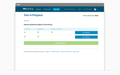 If you need to interrupt a practice test for any reason, you can easily mark your